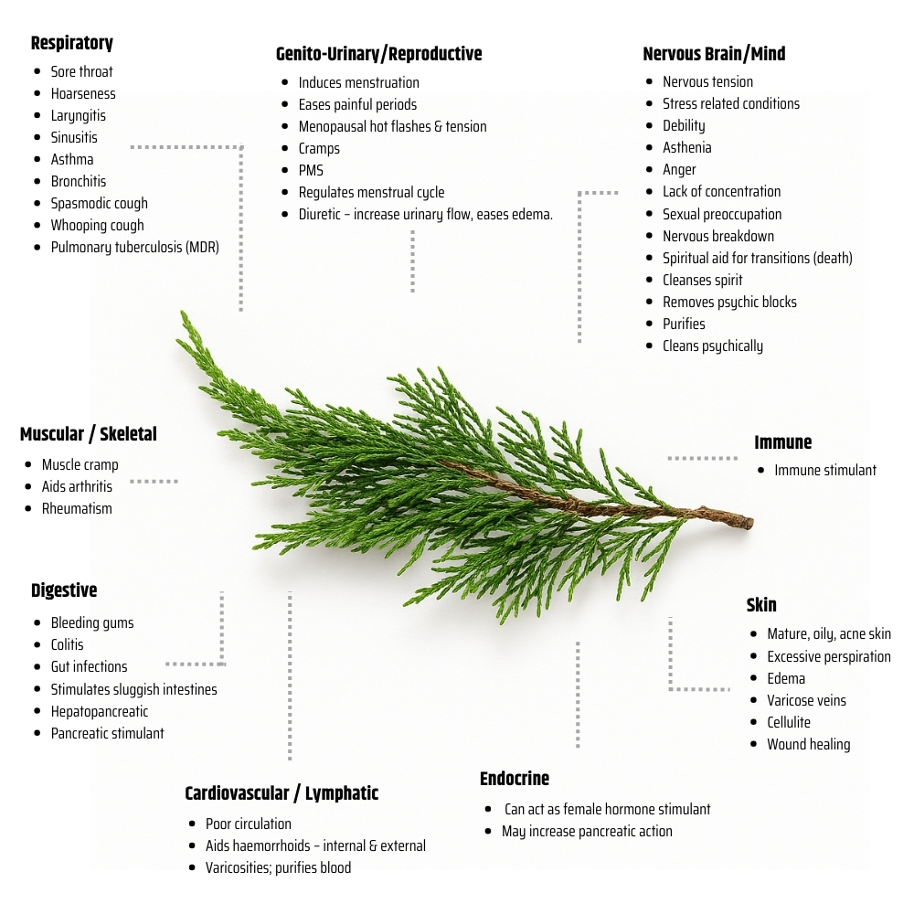 An excellent deodoriser and space cleanser, Cypress oil brings a fresh clarity to body, mind, and home, ideal for moments of energetic reset or emotional release.