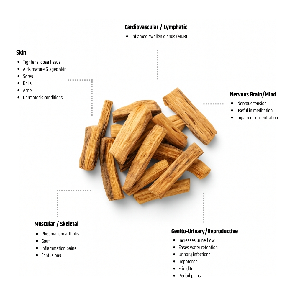 Its aroma is a unique blend of smoky warmth, creamy balsamic sweetness, and subtle woody depth, making it an excellent fixative in natural perfumery. Beyond its use in fragrance, Guaiacwood is also known in aromatherapy for its calming, balancing influence, helping to ease stress, soothe emotions, and provide a sense of stability. It may also support relief from minor inflammation, adding a subtle therapeutic edge to its creative and meditative uses.