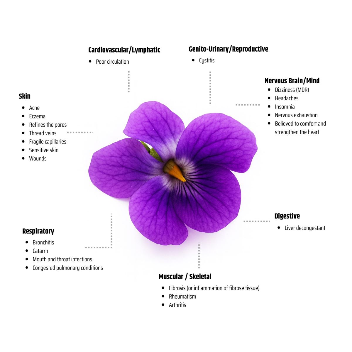 In aromatherapy, Violet Leaf is known for its grounding and emotionally soothing qualities. Its tranquil aroma helps to quiet an overactive mind, ease anxiety, and relieve tension. It promotes a peaceful state of being - ideal for meditation, unwinding at the end of the day, or cultivating emotional resilience. The oil’s delicate freshness also carries uplifting undertones, supporting those experiencing sadness or low mood by gently restoring optimism and inner stability.