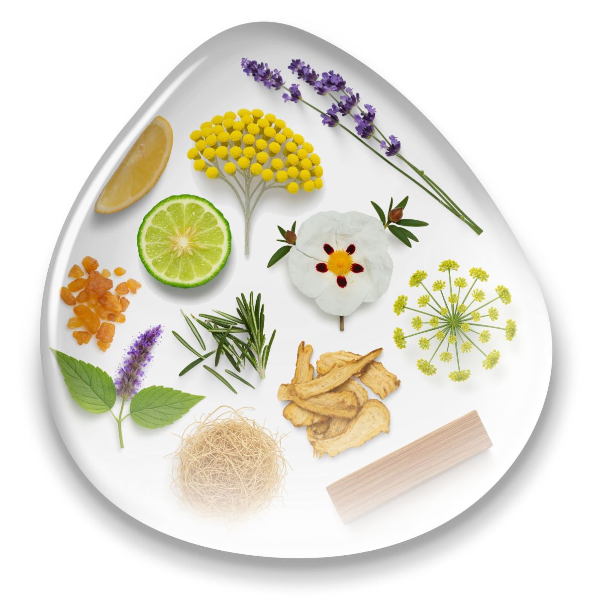 Cistus / Rock Rose (Cistus ladanifer), Angelica Root (Angelica archangelica), Everlast / Helichrysum (Helichrysum italicum), Frankincense / Olibanum (Boswellia carterii), Sandalwood WA (Santalum spicatum), Vetivert (Vetiveria zizanoides), Lavender Provence (Lavandula angustifolia), Bergamot Italian (Citrus bergamia), Galbanum (Ferula galbaniflua), Lemon Australian (Citrus limonum), Patchouli (Pogostemon cablin), Rosemary 1,8 - Cineole (Rosmarinus officinalis cineole).