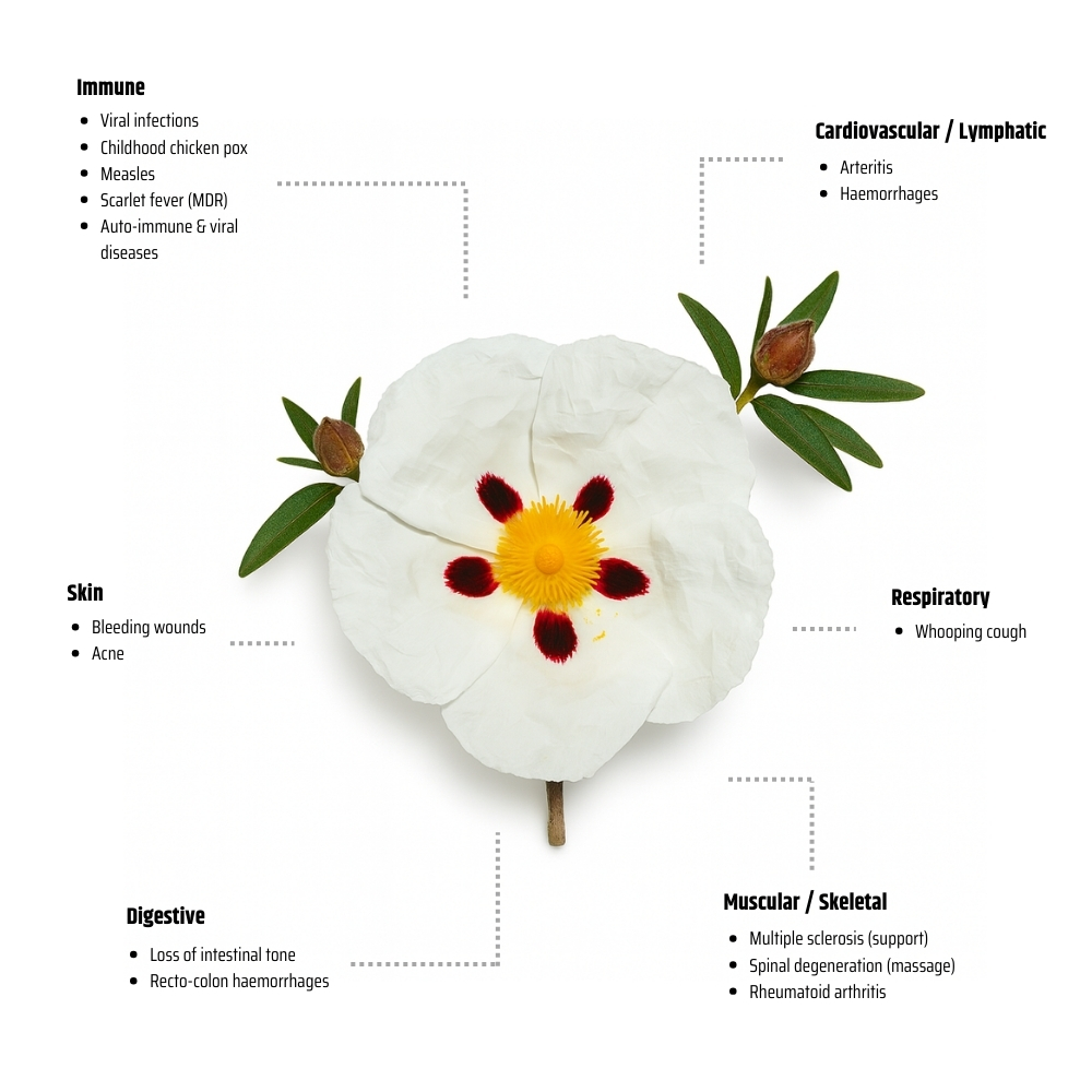 Energetically yang and grounding, Cistus offers skin regenerative properties that are well suited to mature, damaged, or dry skin. Its historical use spans centuries, from biblical times to traditional herbalism, where it was valued for calming the nervous system and soothing inflamed skin.