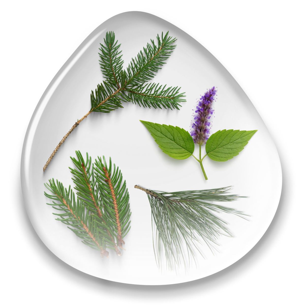 Black Pine (Pinus nigra), Patchouli (Pogostemon cablin), Balsam Fir (Abies balsamea), Cedarwood Atlas (Cedrus atlantica).
