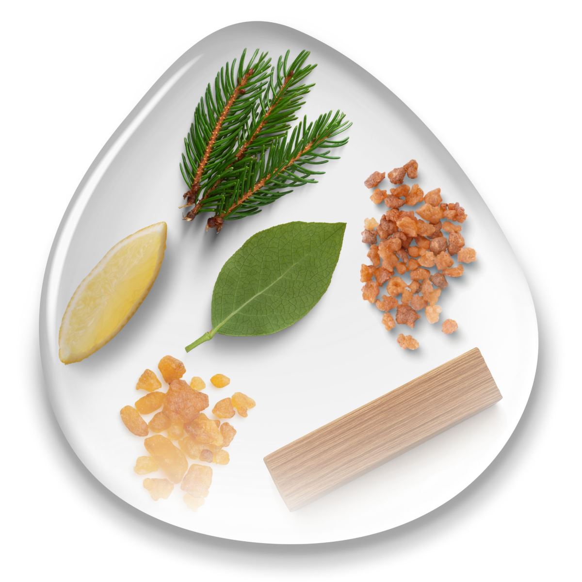 Bay (Laurus nobilis), Cedarwood Atlas (Cedrus atlantica), Myrrh (Commiphora myrrha), Sandalwood, WA (Santalum spicatum), Lemon, Australian (Citrus limonum), Frankincense / Olibanum (Boswellia carterii)